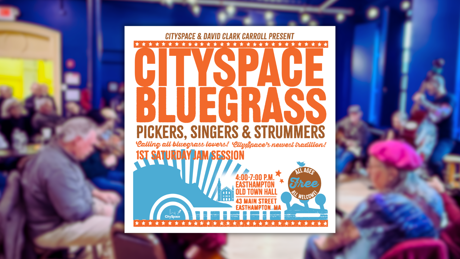Join bluegrass musician David Clark Carroll and CitySpace for a fun, open bluegrass jam! Bring your instruments and your favorite tunes — from Bill Monroe to the Stanley Brothers and beyond. Held every first Saturday of the month during Art Walk Easthampton, this monthly jam brings the community together for music, connection, and good old-fashioned […]